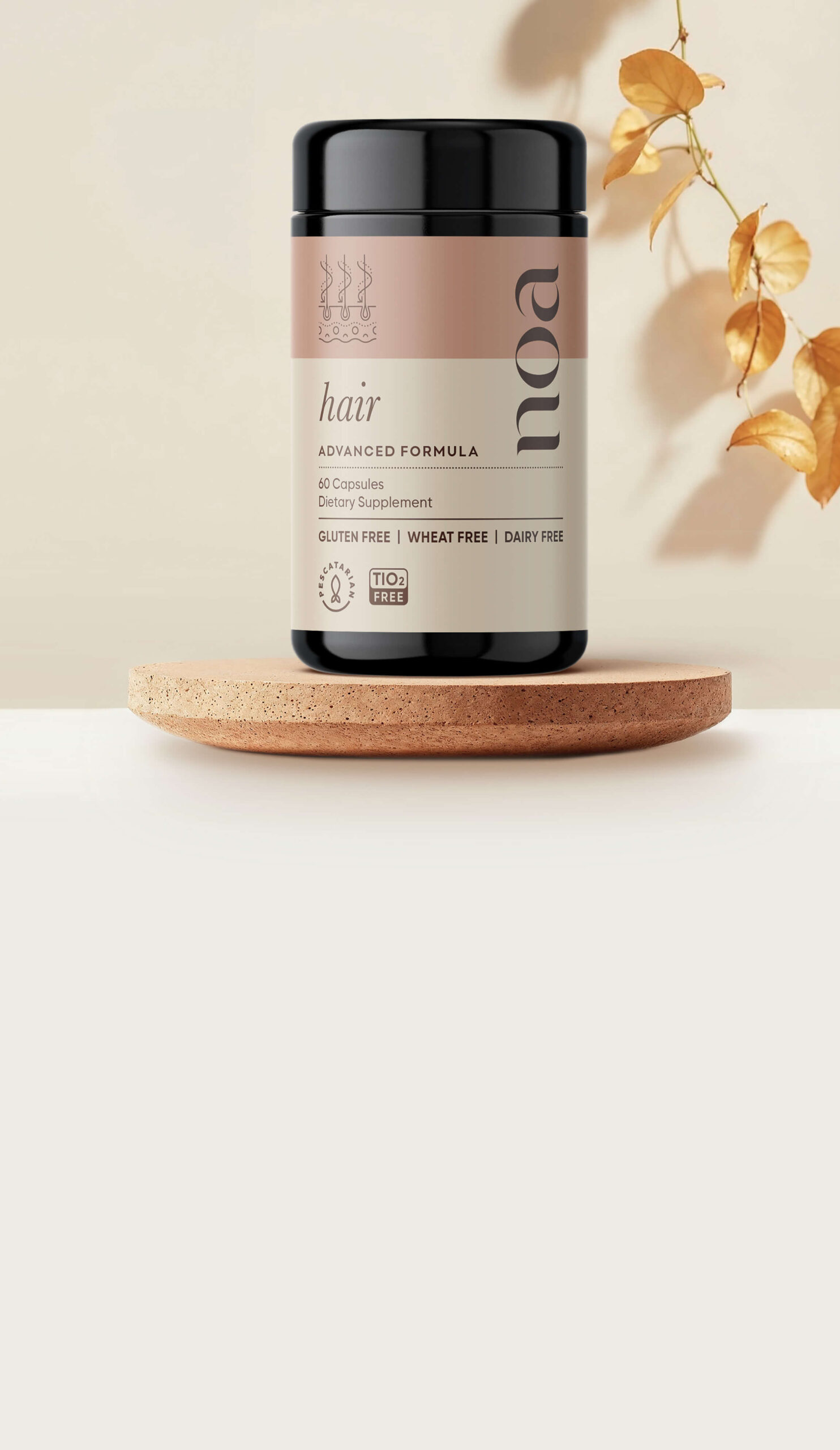 A scientifically formulated supplement designed to nourish your hair from the inside out. Packed with high-quality vitamins, minerals, and botanical extracts, NOA HAIR supports growth, enhances shine, and strengthens hair at the root. Free from artificial additives and GMOs, it's the perfect daily boost for anyone looking to improve hair thickness, resilience, and overall vitality.
