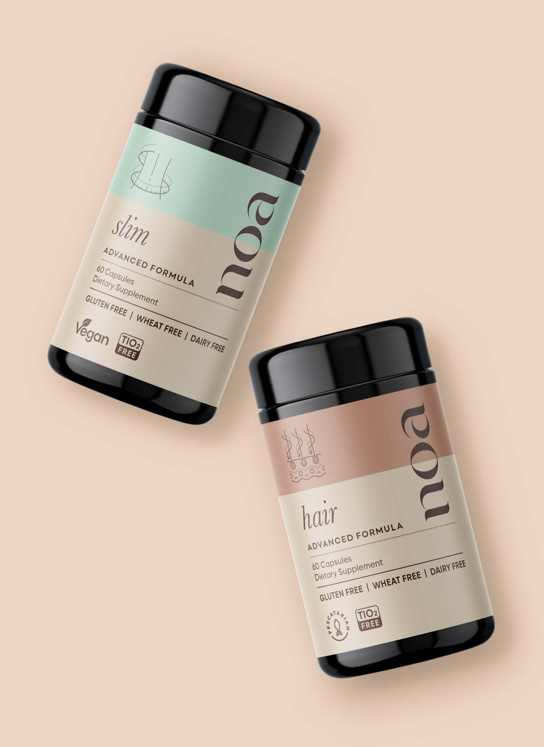 Patience is key with both products. While results vary from person to person, most users begin to notice improvements within 4–6 weeks of consistent use. As individual hair growth cycles and metabolism differ, experiences will naturally vary, for example, some may feel the first effects of NOA Slim as early as two weeks due to differences in digestive tract and metabolic speed. Ultimately, results are individual, and consistency is what truly makes the difference.