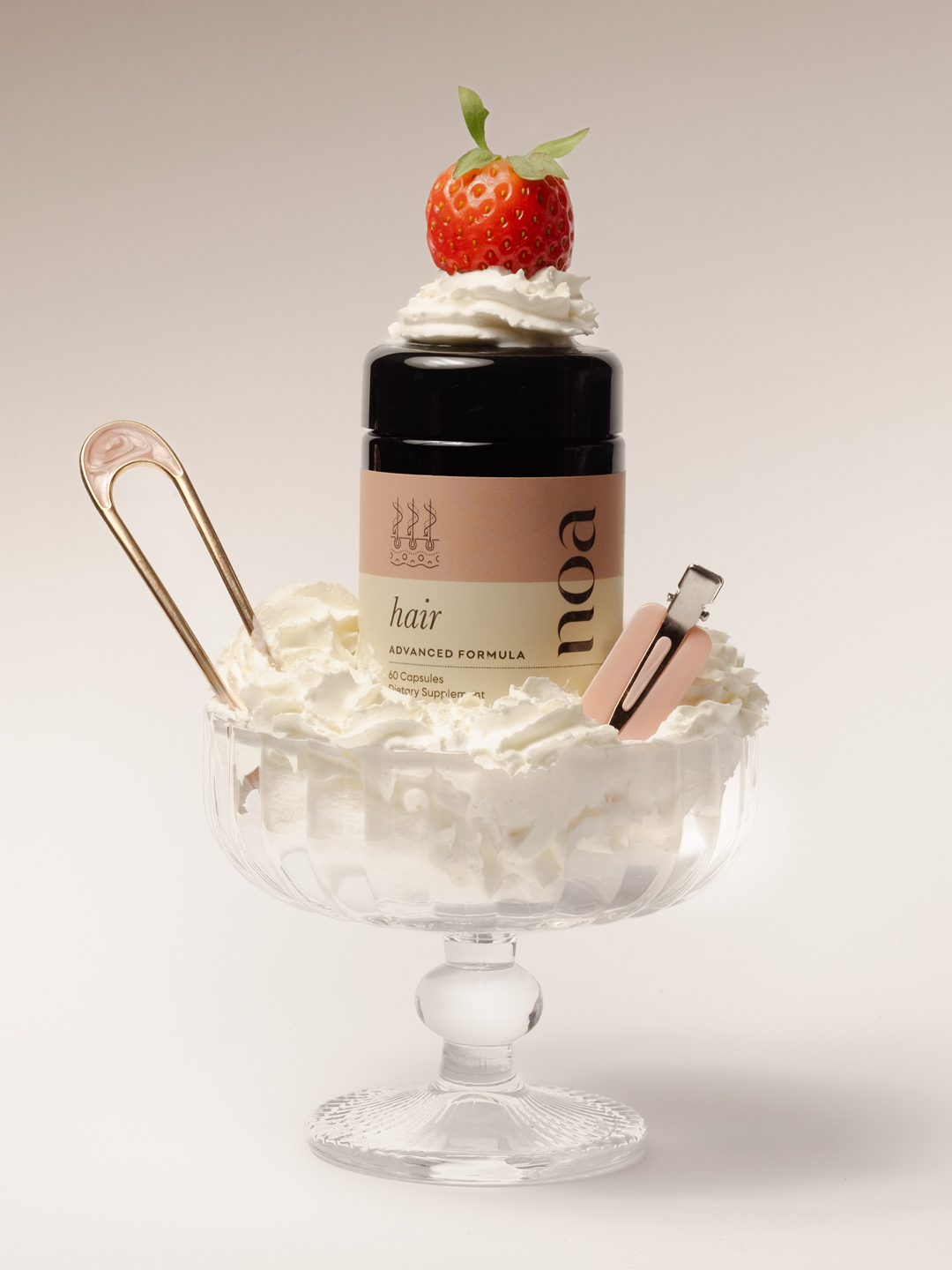 NOA uses only the finest ingredients to support optimal hair health. Our blend includes Quince fruit powder for antioxidants, Biotin, Selenium and Zinc to help maintain normal hair, Hydrolysed fish collagen to restore the scalp, and Bamboo leaf extract for elasticity. Biotin and MSM further enhance growth and shine, while, as hair is an integral part of the skin and inseparable from it, these nutrients also work to improve skin’s health and radiance. Together, they strengthen and beautify your hair from root to tip, while supporting the overall vitality of both hair and skin.